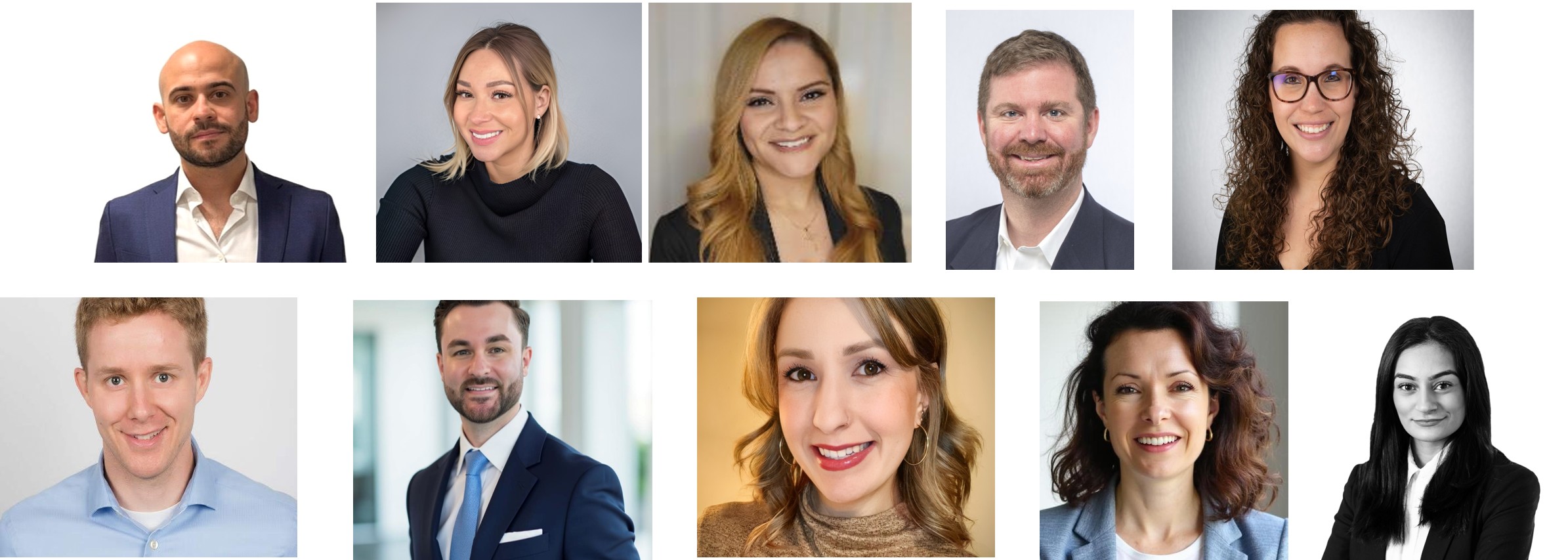 JLL L&D CORE TEAM AND KEY STAKEHOLDERS, top, from left: Benjamin Ortiz, Senior Training Manager; Cassi Godfrey, Global Training Director; Iris Vazquez, Training Manager; Ben Cannon, Head of Learning & Development Operations; and Amy Franks, Workplace Experience Manager. Bottom, from left: Luke Whalen, Director, HR Business Intelligence; Christopher Stabile, People Experience Partner, Industries; Alex O’Connor, L&D AMR and REMS; Ruth Gallaugher, Global AME Program Lead; and Odila Vanstraelen, Commercial Excellence Manager.