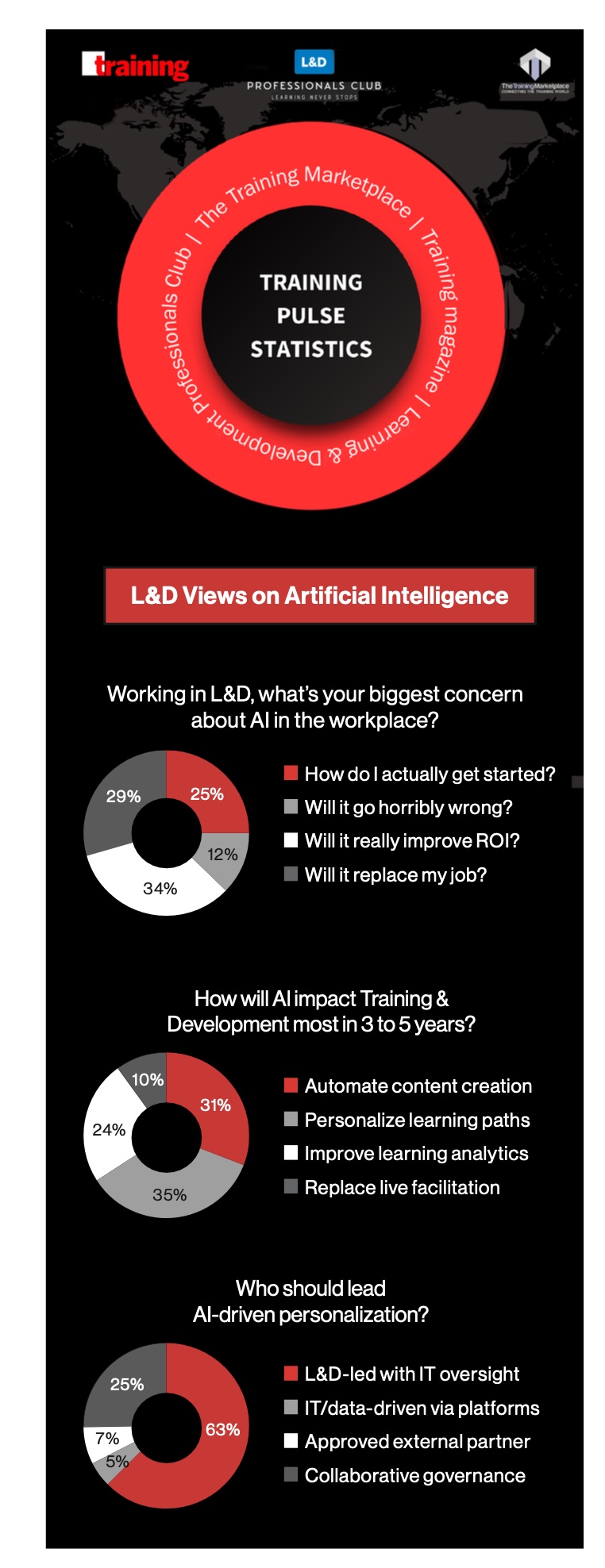 With artificial intelligence (AI) continuing to dominate the headlines—and Learning and Development (L&D) conversations—we focused three out of four of our polls this month on the topic. We wanted to find out L&D’s biggest concern about AI, how it will affect training in the coming years, and who should lead AI-driven personalization.